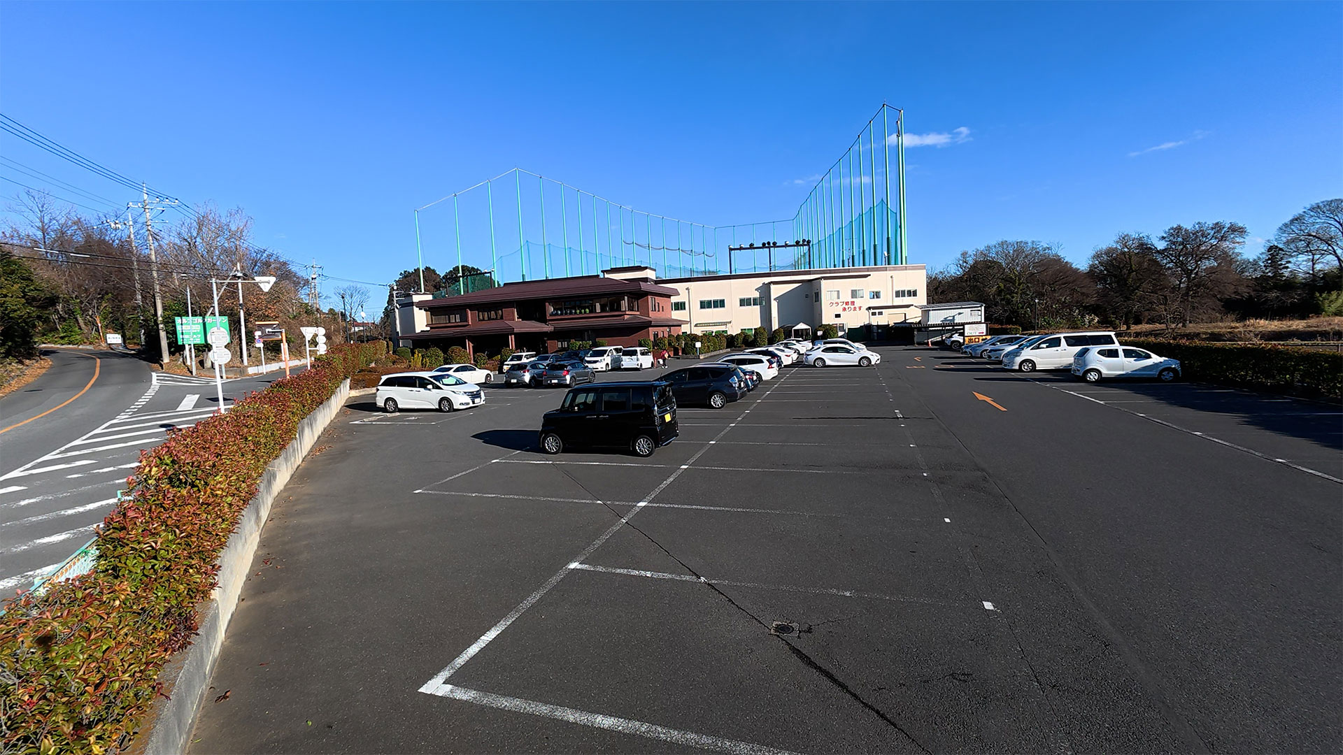 駐車場は100台収容可です。停めやすいように1台1台の幅を広く取っています。