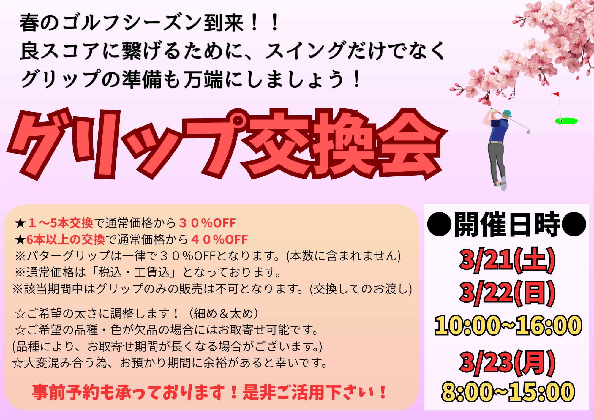 ラウンドで良いスコアを出すために、グリップ交換をしましょう(^^♪